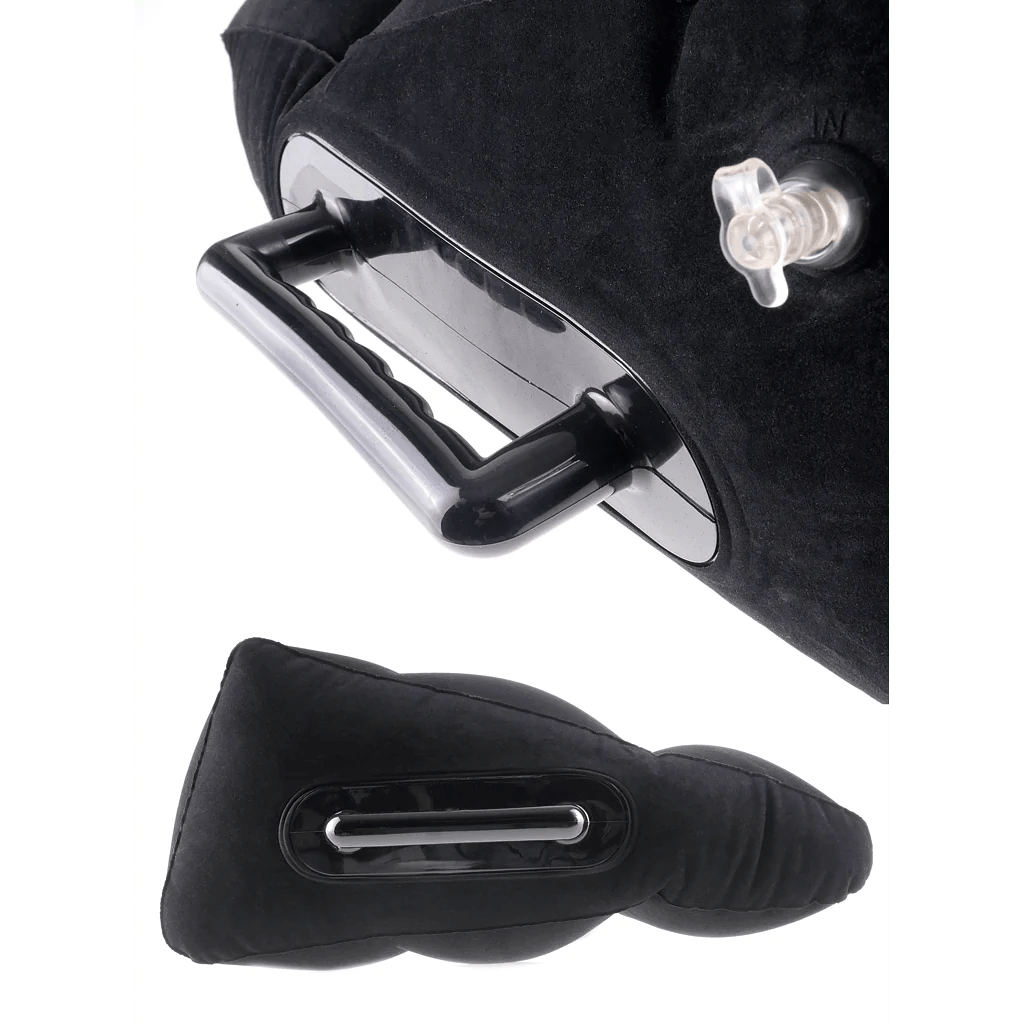 Indulge in your wildest fantasies with this Inflatable Position Master. The slanted, flocked design allows you to relax in any position without sliding off, while the EZ-Grip love handles are perfect for maintaining difficult positions without losing your rhythm. The air seal valve makes inflating the wedge a snap, and when the fun is over, simply deflate the Position Master and it is ready to go where you go.