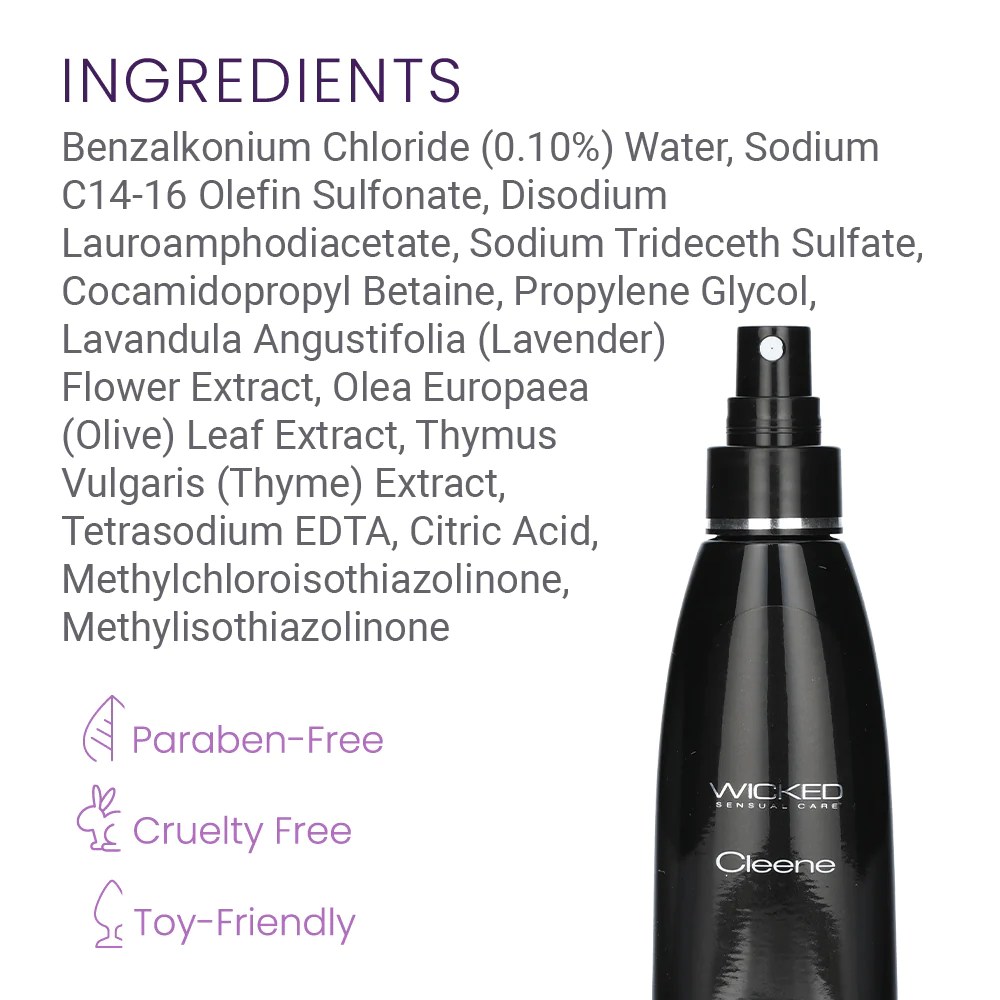 The Wicked Sensual Care Collection is a completely vegan, cruelty-free and PETA certified line of personal lubricants and enhancers developed exclusively for the company by skincare industry veteran Carrie Smith. The Cleene Antibacterial Toy Wash keeps novelties safe and users healthy at the same time. Cleene can be used with all intimate toy materials.